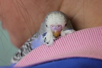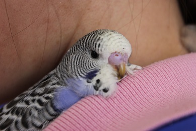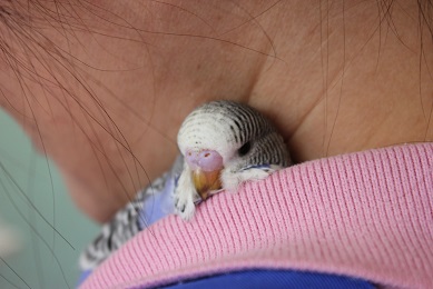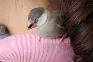 短時間ですが、馴れてもらえるように、肩に乗せてお仕事を