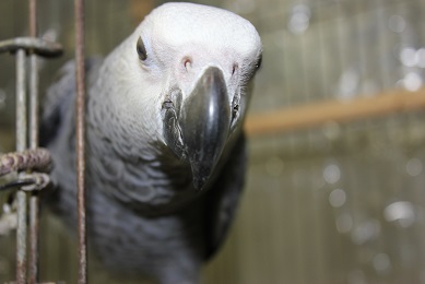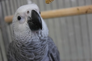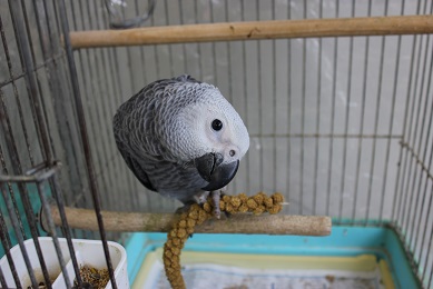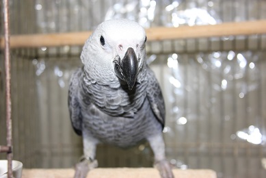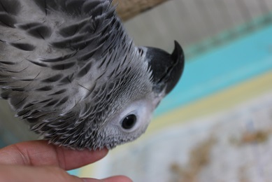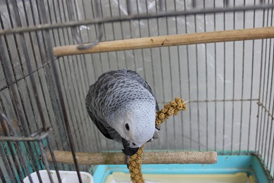 先日入舎したばかりのヨーちゃん(ヨウム)
