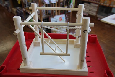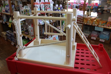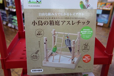 近いうちに「翔んで埼玉」を観に行こうと思う店長です 今日は新商品のお知らせです^^ 小鳥さんの遊び場 「小鳥の箱庭アスレチック」です 化粧箱に入っているので、そのまま陳列して販売もアリなのですが やはりみなさま実物をご覧になりたいだろうということで 一つ組み立ててみました (自分が見てみたかっただけですが・・・ 質感はまぁまぁですかね・・・ ロープを使っているところが斬新ですね! ただし、このロープを上手に使わないと 4本の支柱がぐらついてしまうので注意が必要です! あと、実物をご覧頂くと ブランコとはしごのつくりがチープなところに 少し残念な印象を受ける方が多いと思います。 特にはしごの矢印の部分はすぐ齧られちゃうんですよね (´;ω;`) まぁ木製はしご自体が消耗品ですけれどね でも安心! 壊されちゃってもこちらが代用できますよ~ 先っちょの?型の金具(ヨートと呼びます)を付け替えれば 純正よりもバージョンアップしたものが付けられます(笑) 止まり木部分が齧られちゃっても大丈夫 HOEI35用15パイ止まり木がジャストフィットです♪ こういった遊び場は長く使えてナンボなところもございますので スペアとして使える商品のご紹介もさせていただきました (ナント良心的なブログなんだ・・・ 使用に差し支えないような細かい部分で 若干気になるところもありますが、 こういった商品を作っていただいたメーカーさんには とても有り難く思います 今後、関連商品がどんどん出てくると良いですね~ (それには販売実績が必要なので・・・) 気になる方、是非お試しくださいね~ ではまた ****お知らせ**** ~お知らせ~ 3月よりペットホテル及び爪きり・グルーミング等の価格が改正になりました。 詳しくはスタッフまでお尋ねください。 また、小鳥・小動物の爪きり等に関しまして、ご来店前に お電話にて確認をお願いいたします。 担当不在によりお受けできない場合がございます。 【営業時間変更のお知らせ】 10:00~19:00までの営業となりました! ご迷惑をお掛けしますがよろしくお願いします^^ わんにゃん続々入舎中!最新情報はコチラをどうぞ!! ↓ ↓ ↓ ↓ ↓ ↓ ↓ ↓ ↓ ↓ ↓ ↓ ↓ ↓ ↓ ↑ ↑ ↑ ↑ ↑ ↑ ↑ ↑ ↑ 弊社オンラインショップブログもよろしくお願いします ランキングに参加しております! 良かったらポチっとお願いします! |