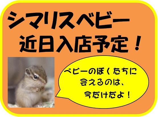 春の風物詩、シマリスのこどもたちがもうすぐ入舎致します! ご予約も受け付けておりますのでお気軽にスタッフまでどうぞ(^^) ーーーーーーーーーーーーーーーーーーーーーーーーーーー こんにちは 店長です 先程、猫ちゃんのワクチン接種に行ってきました。 このところ動物病院へ行くタイミングが上手く取れなかったのですが 無事に このコ達の 1回目の予防注射が終わりました どのコも日曜日くらいにはお引渡しできると思います! 気になるコが居ましたら会いにきてくださ~い 今日は掘り出し物のお知らせもありますよ~ 店内にわんちゃん、ねこちゃんのお手入れ用品の特売コーナーが出現しました!! どの商品も非常にお買得になっております レジ横に並んでおりますので、お会計時にぜひ衝動買いを!!(笑) では わんにゃん続々入舎中!最新情報はコチラをどうぞ!! ↓ ↓ ↓ ↓ ↓ ↓ ↓ ↓ ↓ ↓ ↓ ↓ ↓ ↓ ↓ ↑ ↑ ↑ ↑ ↑ ↑ ↑ ↑ ↑ 弊社オンラインショップブログもよろしくお願いします ランキングに参加しております! 良かったらポチっとお願いします! PR |
